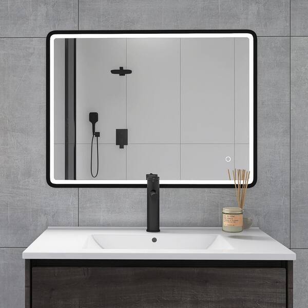 24 in. W x 32 in. H Rectangular Framed Wall Bathroom Vanity Mirror in Black