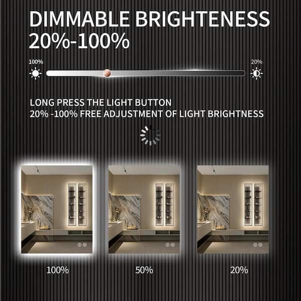 24 in. W x 32 in. H Rectangular Frameless LED Backlit Wall Mounted Anti-Fog Bathroom Vanity Mirror with Touch Switch