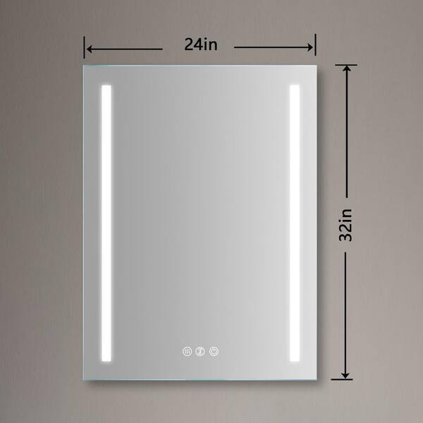 24 in. W x 32 in. H Rectangular Frameless Wall Mount Anti-Fog Feature with Night light Bathroom Vanity Mirror