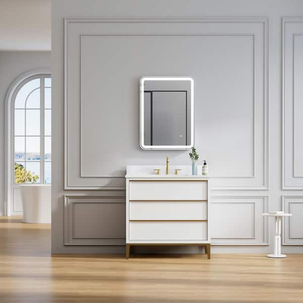 24 in. W x 32 in. H Rectangular R-Shaped Corners Aluminum Framed Dimmable LED Wall Bathroom Vanity Mirror in White