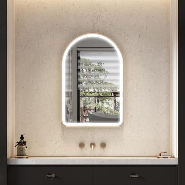 24 in. W x 36 in. H Arched Framed Anti-Fog Wall LED Bathroom Vanity Mirror in Brushed Gold