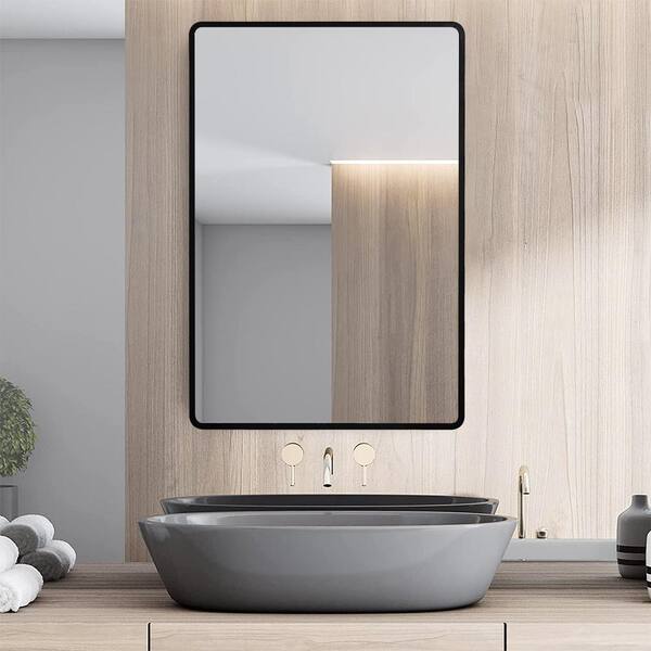 24 in. W x 36 in. H Black Rectangular Iron Wall Mount or Recessed Medicine Cabinet with Mirror
