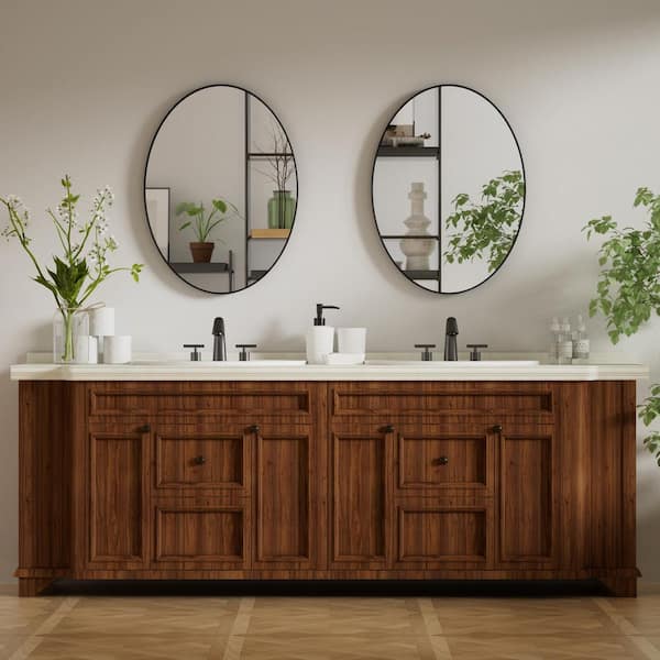 24 in. W x 36 in. H Large Oval Mirror Stainless Steel Framed Mirror Wall Mirrors Bathroom Vanity Mirror in Brushed Black