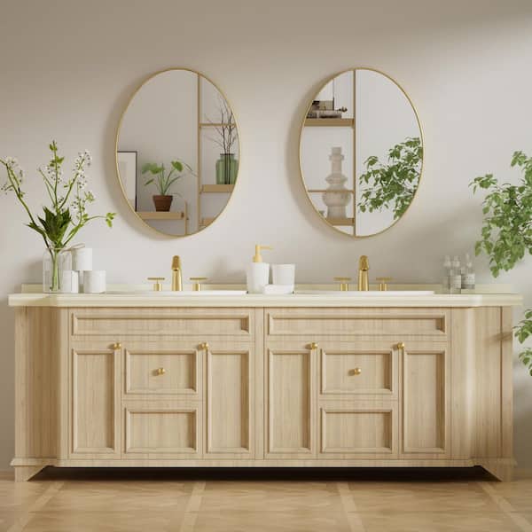 24 in. W x 36 in. H Large Oval Mirror Stainless Steel Framed Mirror Wall Mirrors Bathroom Vanity Mirror in Brushed Gold