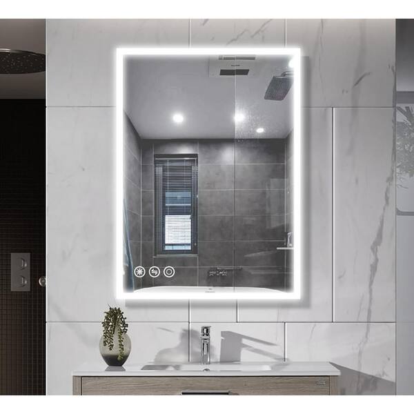 24 in. W x 36 in. H Medium Rectangular Frameless LED Lighted Wall Mount Bathroom Vanity Mirror in Silver