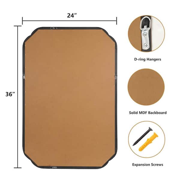 24 in. W x 36 in. H Medium Washed Black Wood Finish Wall Mirror - French Country Natural Pine
