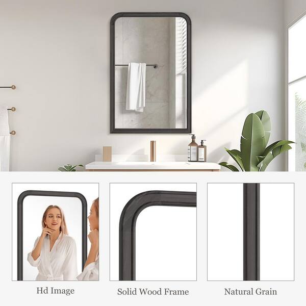 24 in. W x 36 in. H Rectangle Wood Frame Wall-mounted Bathroom Vanity Mirror in Black Finish