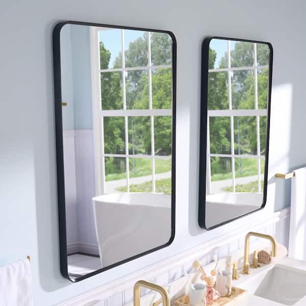 24 in. W x 36 in. H Rectangular Anodized Aluminium Framed Wall Mount Bathroom Vanity Mirror in Matte Black