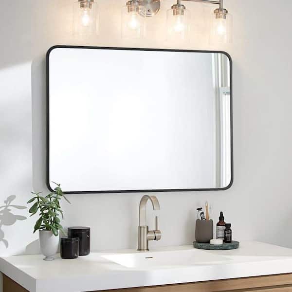 24 in. W x 36 in. H Rectangular Framed Wall Mounted Bathroom Vanity Mirror in Black