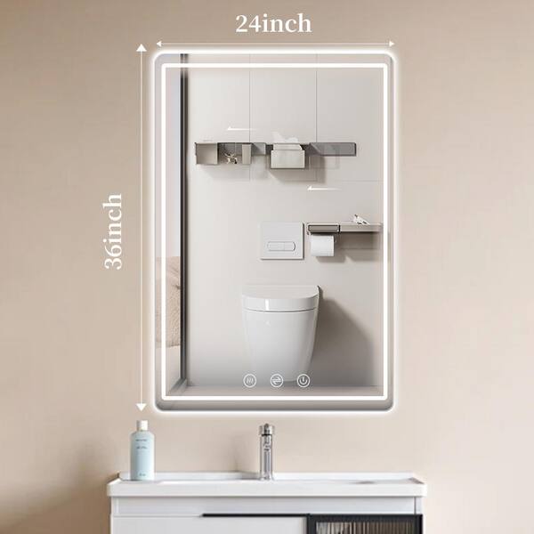 24 in. W x 36 in. H Rectangular Frameless Wall Bathroom Vanity Mirror with LED Lights, Front and Backlight