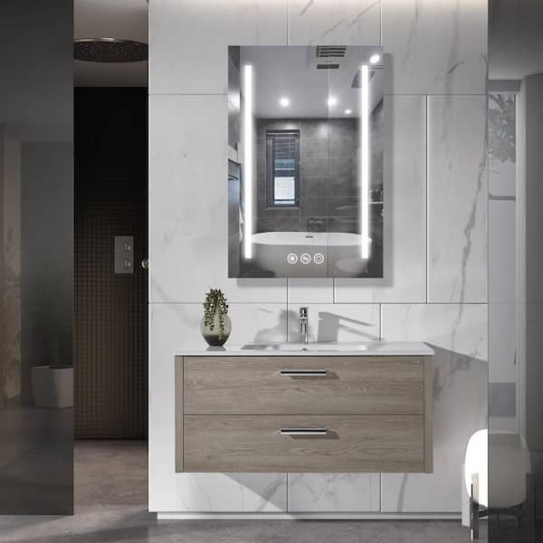 24 in. W x 36 in. H Rectangular Frameless Wall Mounted Anti-Fog LED Bathroom Vanity Mirror in Silver
