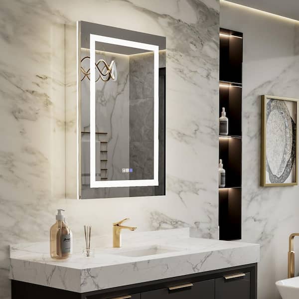 24 in. W x 36 in. H Rectangular Silver Aluminum Recessed/Surface Mount LED Medicine Cabinet with Mirror, Right Hinge
