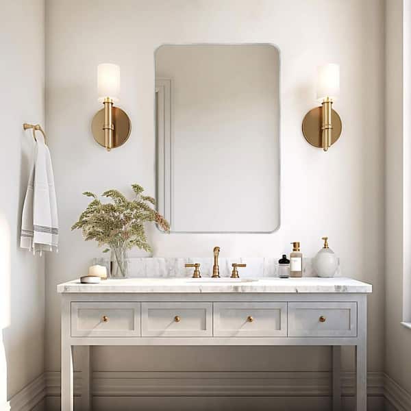 24 in. W x 36 in. H Silver Vanity Rectangle Wall Mirror Aluminum Alloy Frame Bathroom Mirror