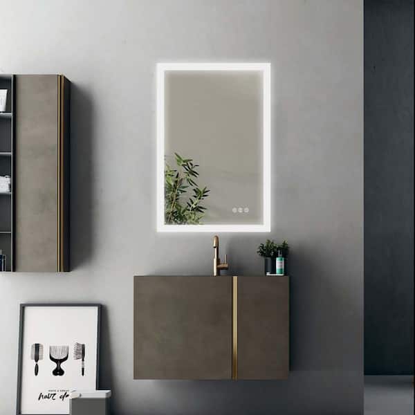 24 in. W x 36 in. H Small Rectangular Steel Framed Wall Bathroom Vanity Mirror with Button