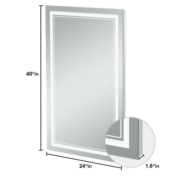 24 in. W x 40 in. H Rectangular Frameless Wall Mount LED Anti Fog Modern Decorative Bathroom Vanity Mirror