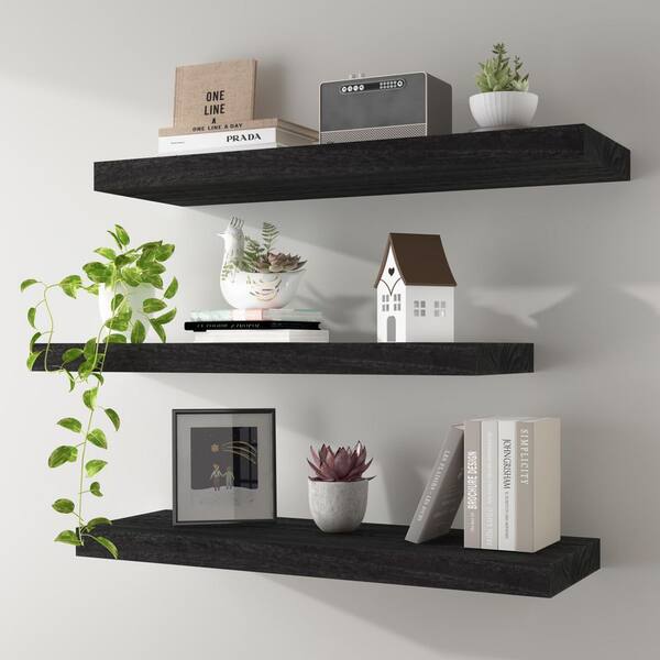 24 in. W x 6.7 in. D Black Floating Shelves Decorative Wall Shelf (Set of 3)