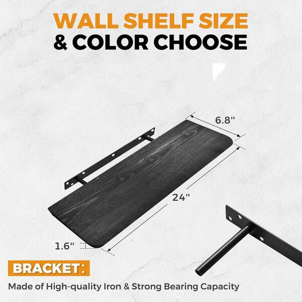 24 in. W x 6.8 in. D Black Decorative Wall Shelf, Wall Mounted Shelves(2-Pack)