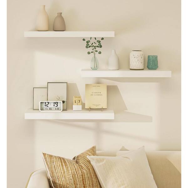 24 in. W x 7.9 in. D White Floating Shelves Decorative Wall Shelf (Set of 3)