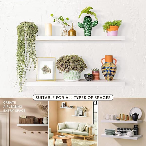 24 in. W x 7 in. D Decorative Wall Shelf, Set of 2-White Floating Shelves Wall Mounted