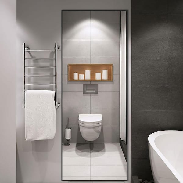 24 in. W x 71 in. H Modern Rectangular Metal Framed Wall Bathroom Vanity Mirror in Black