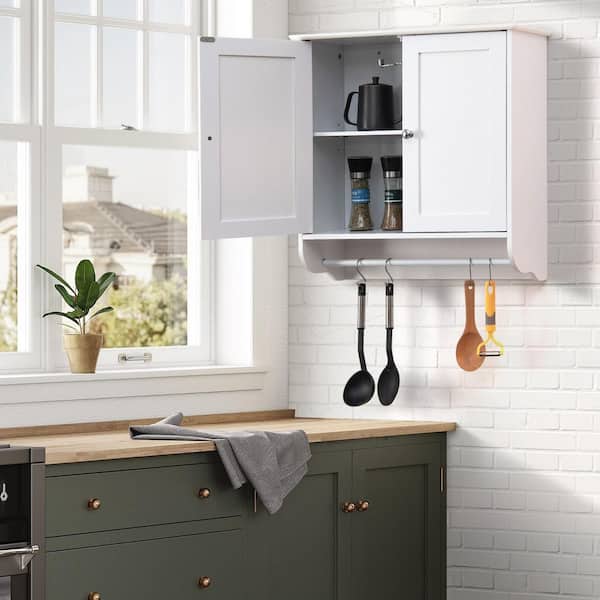 24 in. W x 8.5 in. D x 24 in. H White Bathroom Wall Cabinet with Towel Bar and Adjustable Shelf