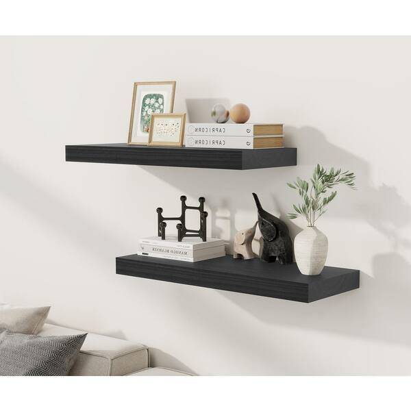 24 in. W x 9.3 in. D Black Floating Shelves Decorative Wall Shelf (Set of 2)
