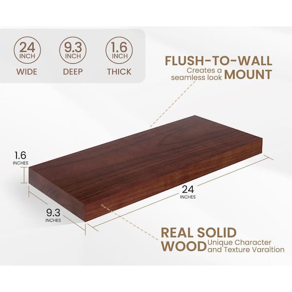 24 in. W x 9.3 in. D Brown Floating Shelves Decorative Wall Shelf (Set of 2)