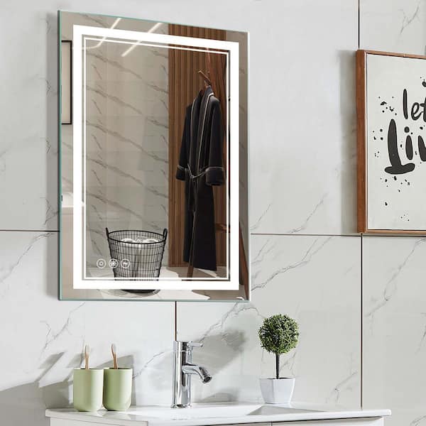24 in. W x32 in. H LED Large Rectangular Frameless Anti-Fog wall Bathroom Vanity Mirror in Silver