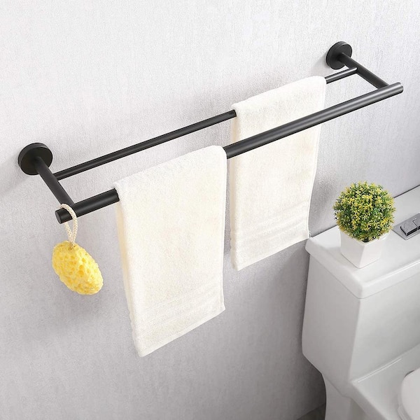 24 in. Wall Mounted Double Towel Bar in Stainless Steel Matte Black