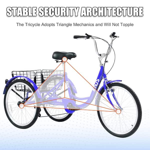 24 in. Wheels Blue 7 Speed Cruiser Bicycles Adult Tricycle Trikes with Large Shopping Basket