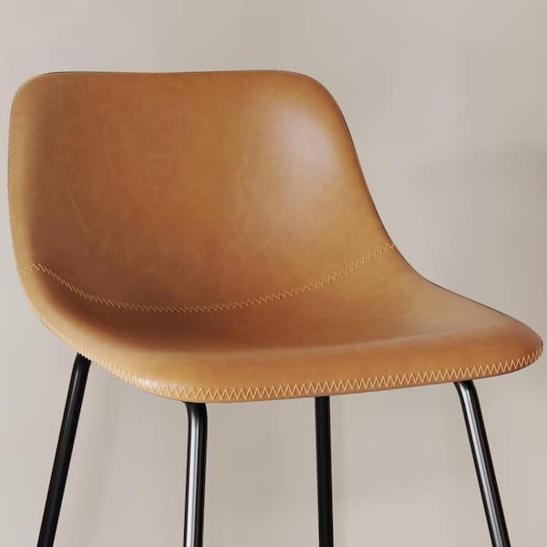 24 in. Whiskey Brown Faux Leather Bar Stool Metal Frame Counter Height Bar Stools Set of 4
