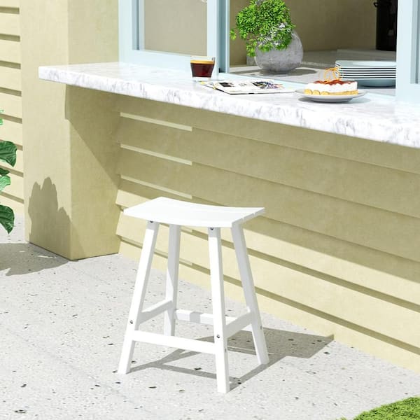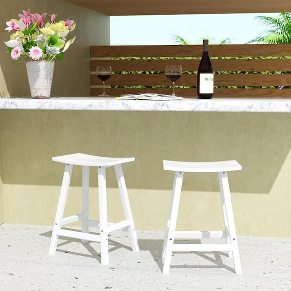 24 in White Plastic Counter Height Outdoor Bar Stool (2-Pack)