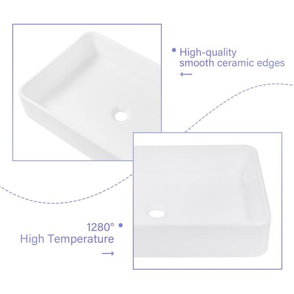 24 in. x 16 in. Rectangular Vessel Bathroom Sink in White Ceramic