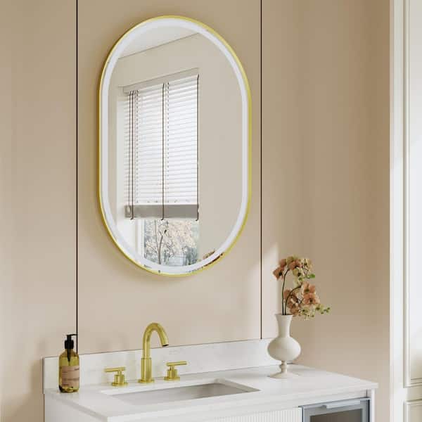 24 in. x 36 in. Oval Aluminum Framed Anti-Fog Back-Lit LED Light Wall Bathroom Vanity Mirror in Brushed Gold