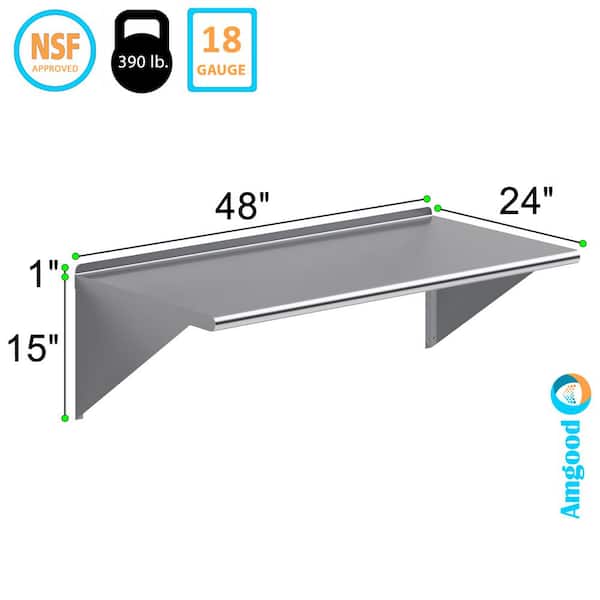 24 in. x 48 in. Stainless Steel Wall Shelf Kitchen, Restaurant, Garage, Laundry, Utility Room Metal Shelf with Brackets