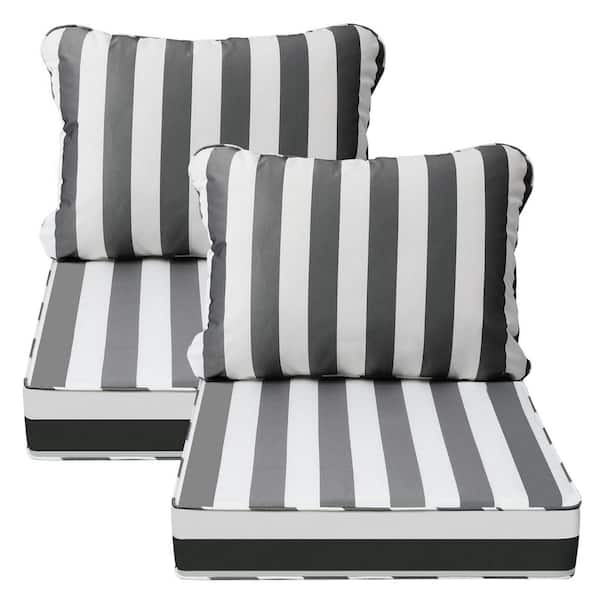 24 x 24 Outdoor Deep Seat Lounge Chair Patio Cushions, Zipper Closure Covers with 2-Ties, Gray Cabana Stripe (Set of 2)
