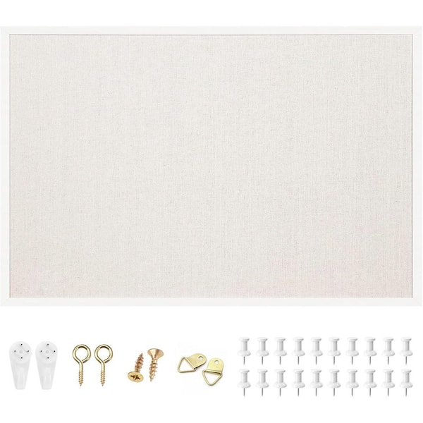 24x36 Inch Linen Cork Bulletin Board White Oak Frame Decorative Vision Pin Board Easy Wall Mounting White