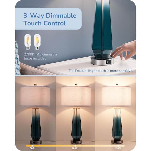 25.2 in. Blue Touch Control 3-Way Table Lamp with Dual USB Ports (2-Pack)