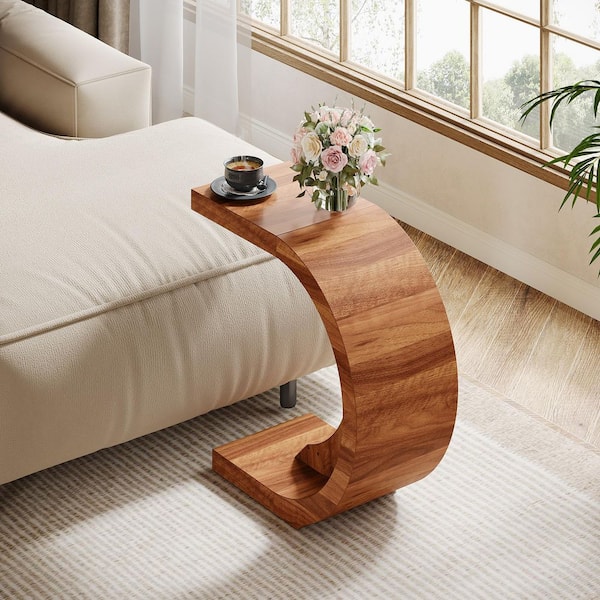 25.59 in. Walnut Brown C-Shaped Engineered Wood End Table, Wood Side Table for Couch Sofa Living Room, Small Space