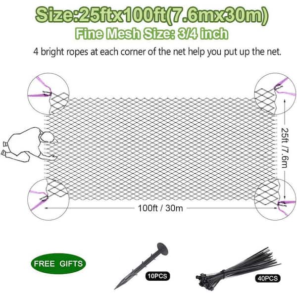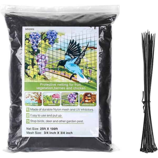 25 ft. x 100 ft. Black Bird Netting Heavy-Duty Nylon 3/4 in. Garden Netting Protects Fruit Trees, Plants and Vegetables