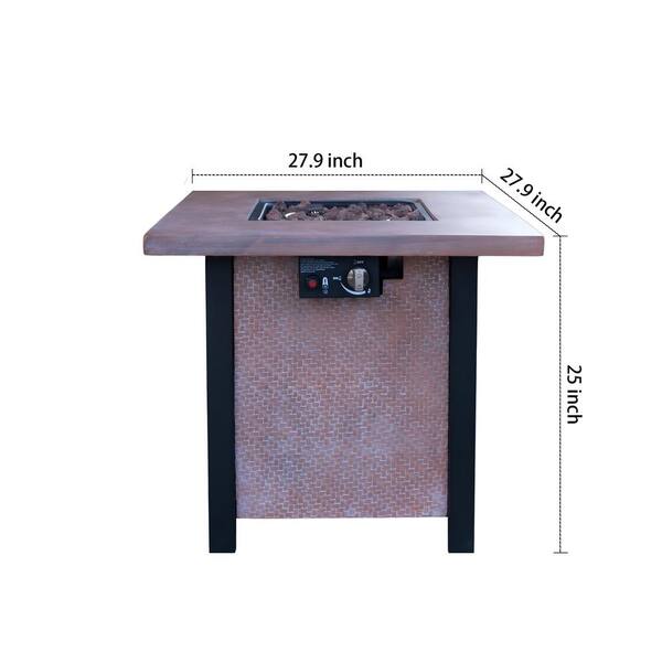 25 in. H Square 50,000 BTU Dark Pink Outdoor Propane Gas Fire Pit Table with Tabletop Lid, Rain Cover, Lava Stone