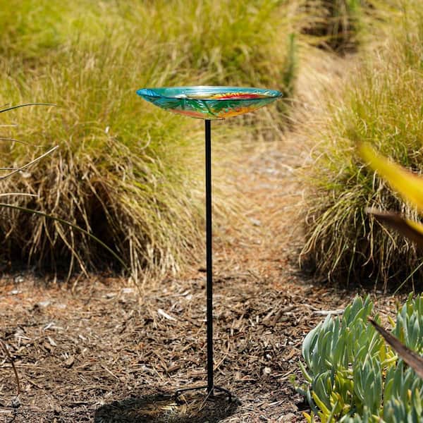 25 in. H x 10 in. Dia Multicolor Glass Birdbath with Flowers and Bee