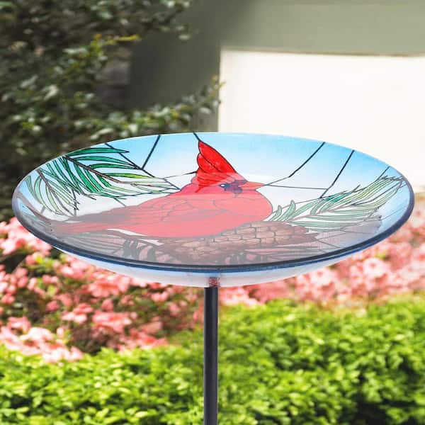25 in. H x 11 in. Dia Cardinal Glass Birdbath with Metal Stake