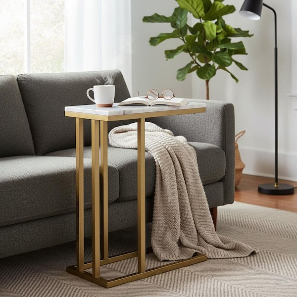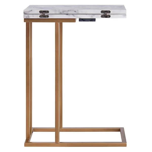 25 in. H x 18.13 in. W Marmo Modern Marble-Look C Shape Side Table, Marble/Brass