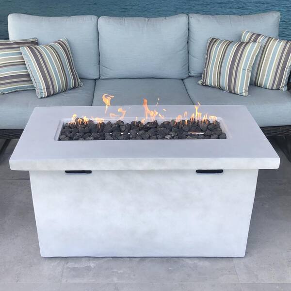 25 in. H x 42 in. W Fiber Reinforced Concrete Propane Outdoor Fire Pit Table, Stainless Steel Burning Zone