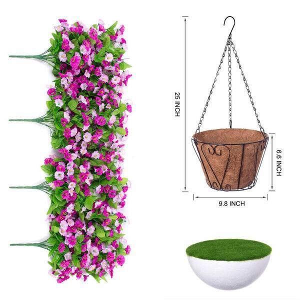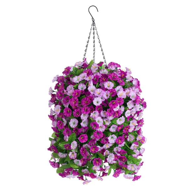 25 in. Multi-Colored Outdoor Artificial Morning Glory Flower in Basket Garden Decoration