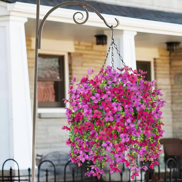 25 in. Purple Red Artificial Faux Silk Daisy Hanging Flowers Plants with Basket