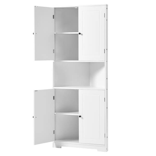 25 in. W x 14.96 in. D x 63.18 in. H White MDF Freestanding Linen Cabinet Adjustable Shelf