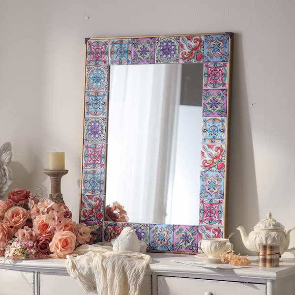 25 in. W x 32 in. H Medium Classic Rectangle Colorful Tile Framed Accent Mirror