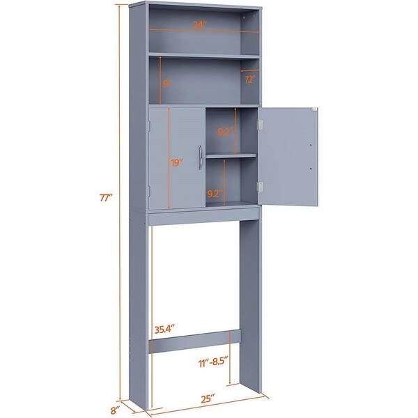 25 in. W x 77 in. H x 8 in. D Wood Rectangular Shelf in Grey